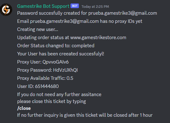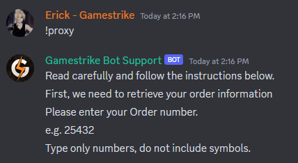 When you buy Proxy for Steam for the first time at Gamestrike you’ll need to go to our Discord Server to get your proxy data. Once you joined our Discord Server you must create a ticket and use the command !proxy.