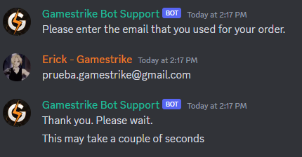 Wait a couple of seconds so the bot checks your order info.