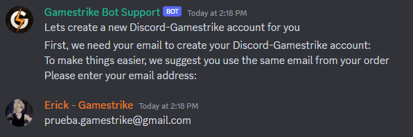 7. Enter the email for your new Discord-Gamestrike account. I highly recommend you use the same email from your order to avoid confusion in the future.