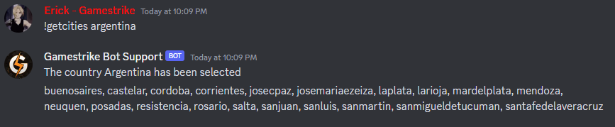 It’s easy, just type !getcities followed by the country you want to get the cities from.